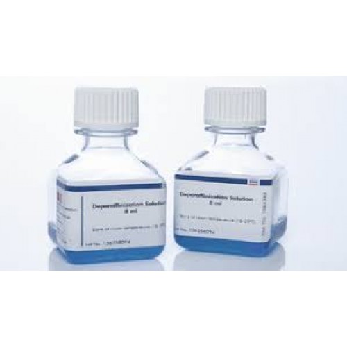 A solução de desparafinização é otimizada para desparafinização antes da purificação de DNA ou RNA de seções de tecido fixadas em formalina e embebidas em parafina. Após a adição a uma amostra FFPE, a solução permanece na amostra enquanto a digestão com proteinase K é realizada. Não é necessário sedimentar a amostra FFPE após a adição da solução de desparafinização ou remover o sobrenadante contendo parafina. A solução de desparafinização da QIAGEN não tem cheiro e é facilmente rastreada com seu corante marcador azul. A solução de desparafinização faz parte do kit EpiTect Plus Bisulfite e também pode ser usada com o kit QIAamp DNA FFPE Tissue, kit RNeasy FFPE, kit miRNeasy FFPE, kit QIAsymphony RNA e mini kit QIAsymphony DNA.