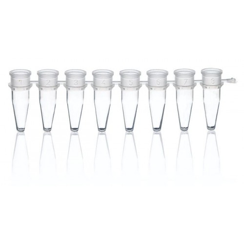 TIRA C/ 8 TUBOS E 8 TAMPAS PCR 0,2 ml EM TIRAS EM PP TR BRAND (250 TIRAS C/ 08 TUBOS)