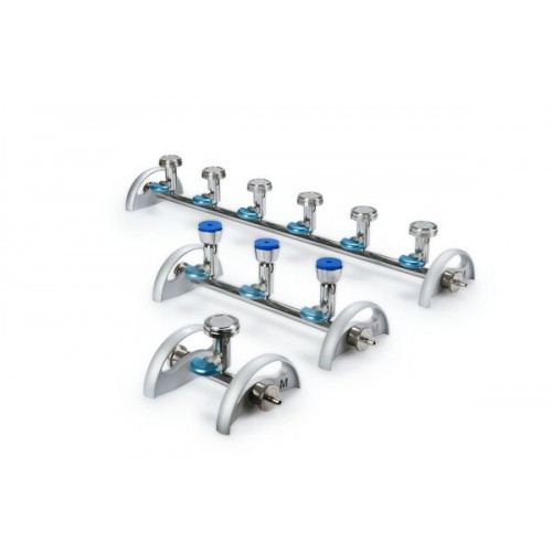 Vacuum manifolds support simultaneous filtration of three or six test samples. Use Millipore glass, plastic or stainless steel filter holders fitted with standard No. 8 perforated stoppers over holder outlets. EZ-Fit™ Manifold is available with the new Microfil® head for use with presterilized, ready-to-use funnels and membranes.