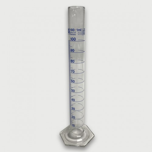 PROVETA 100 ml EM VIDRO DIV. 1 ml CLASSE A GRAV. AZUL BASE HEXAGONAL BRAND